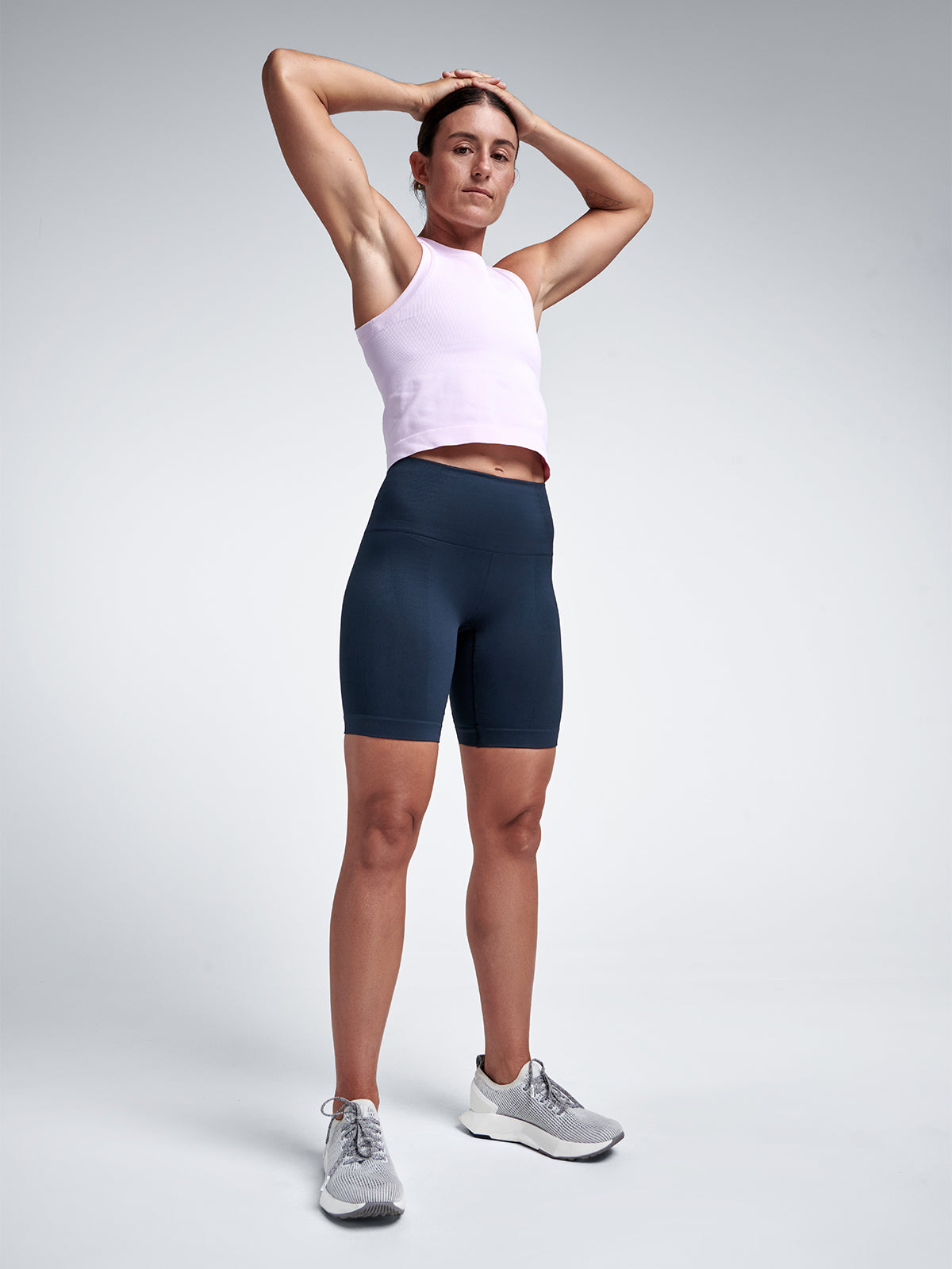 Made using our signature seamless machines to create sculpting paneling across the bum and thighs, the CHISEL bike shorts boast the same super-compressive fit as our The Chisel leggings - but in a much shorter length. The short version, however, has been engineered to create maximum hold around the bum and waist, but tapering down towards the hem, ensuring a smooth and flattering finish (no digging in!)