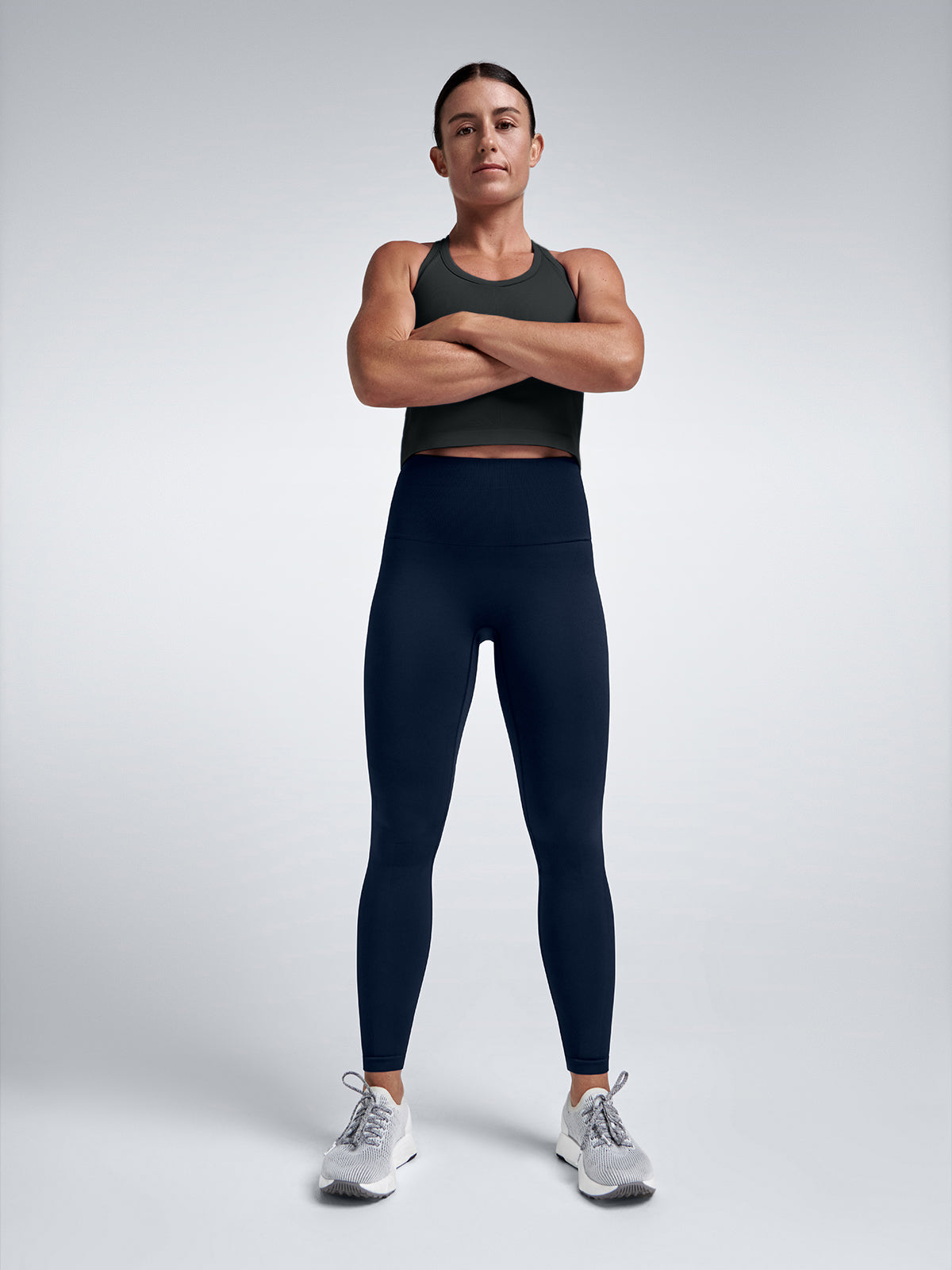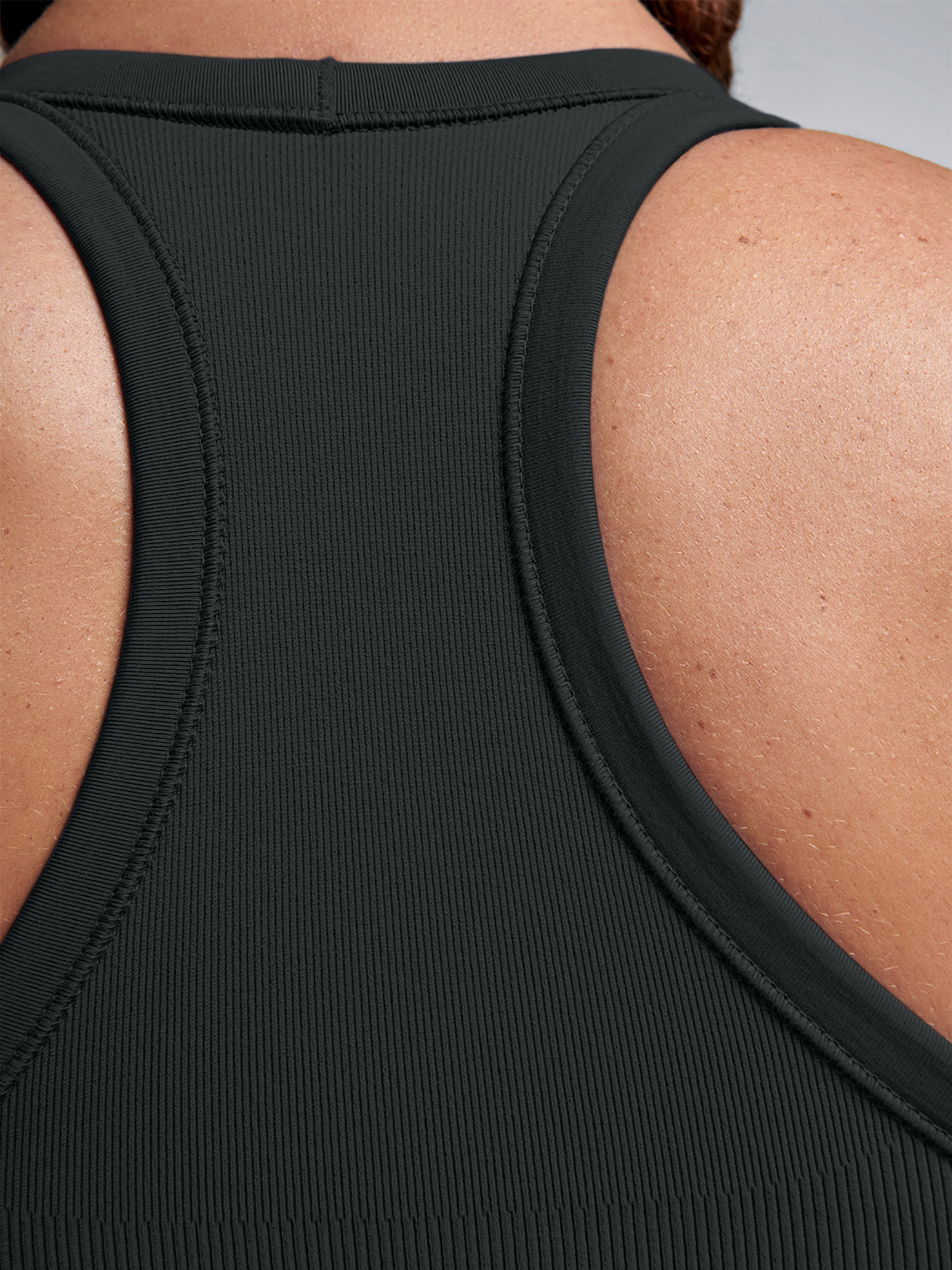 The CROPPED MUSCLE TANK is designed for your sweaty workouts or hot climates. This seamless tank features a scooped neckline and a slim fit, complete with an inbuilt bra that keeps you supported without any restrictions. Crafted from our Recycled Super Sculpting Seamless fabric, its racerback silhouette is stamped with reflective branding made from recycled corn cobs.
