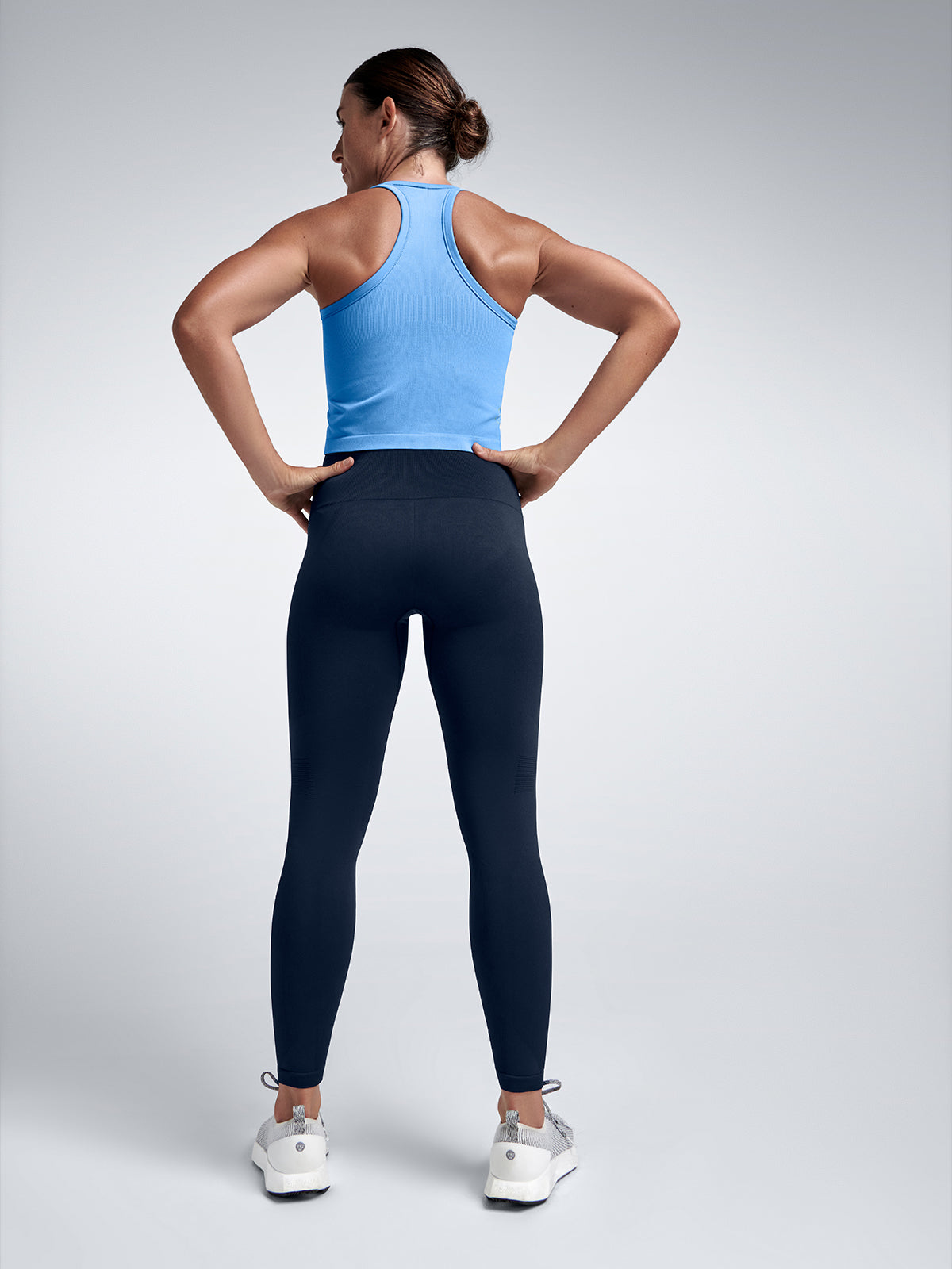The CROPPED MUSCLE TANK is designed for your sweaty workouts or hot climates. This seamless tank features a scooped neckline and a slim fit, complete with an inbuilt bra that keeps you supported without any restrictions. Crafted from our Recycled Super Sculpting Seamless fabric, its racerback silhouette is stamped with reflective branding made from recycled corn cobs.