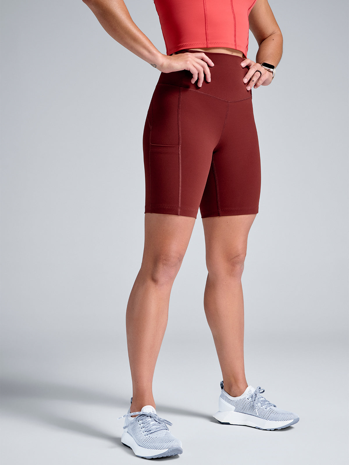 The FATAL ATTRACTION 8" Bike Short is made from our matte + firm Peach Perfect fabric. This medium weight, high compression fabric is silhouette-smoothing and completely squat proof. With side pockets for your valuables, it's ideal for outdoor training as well.