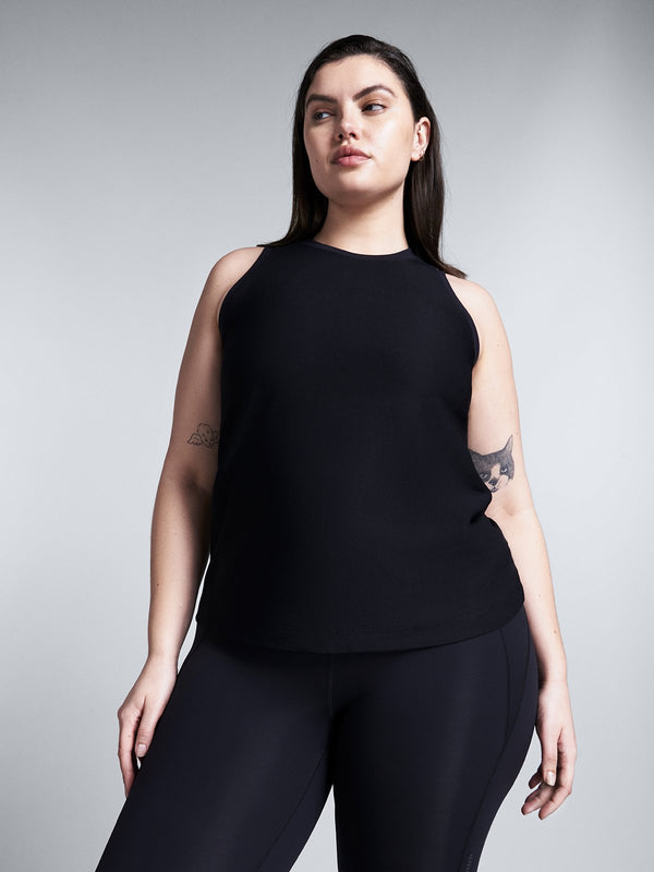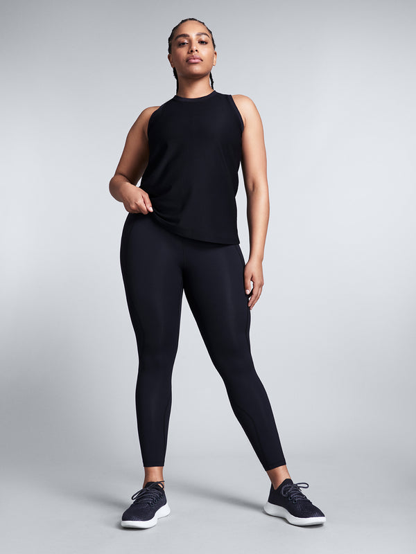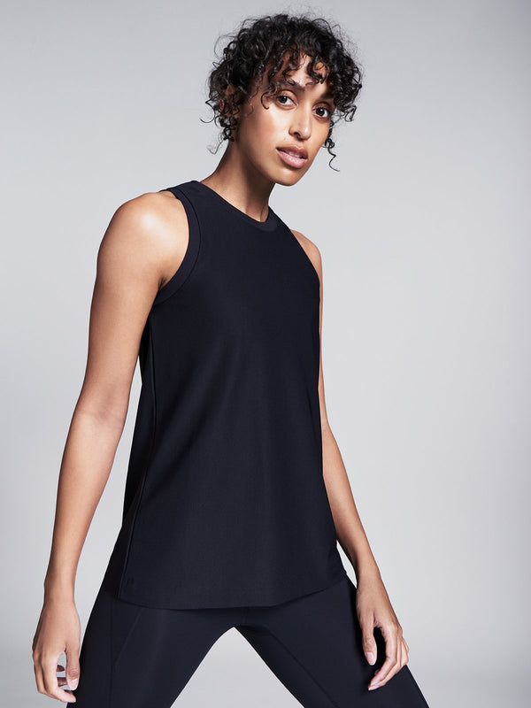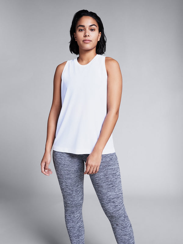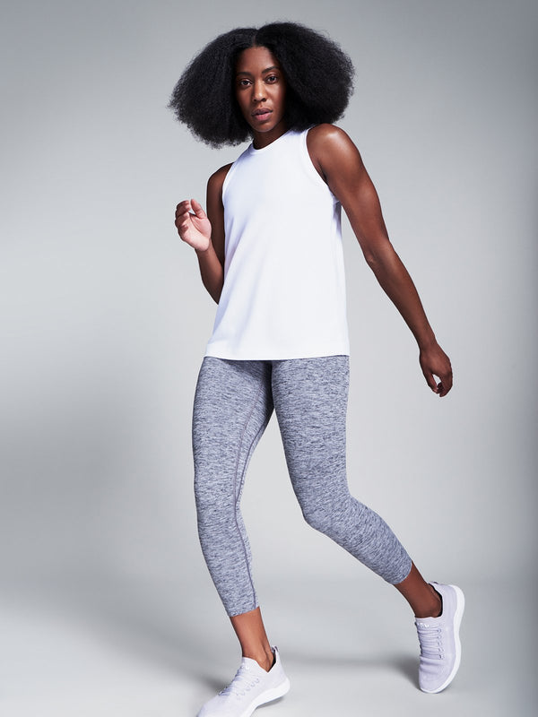 This sleeveless layer is imbued with four-way stretch for flexibility and topped with a high neck for coverage. Instantly moisture wicking, its slinky, draped silhouette won’t stick to you so it’ll keep you cool and ventilated during (and in-between) sweaty workouts.