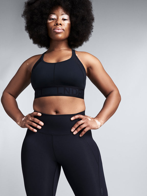 The LIMITLESS SPORTS BRA ditches the bulky cups you would normally associate with padded sports bras. Instead, it features an integrated panel of light padding that covers the entire front of the bra, to offer medium-high support for A-C cups (or medium-low for D-DD cups), without the distraction of constant readjustments. We've sewn the padding into the bra so that the shape and support doesn't change with wear and wash cycles. No curled up or ill-fitting pads to deal with.