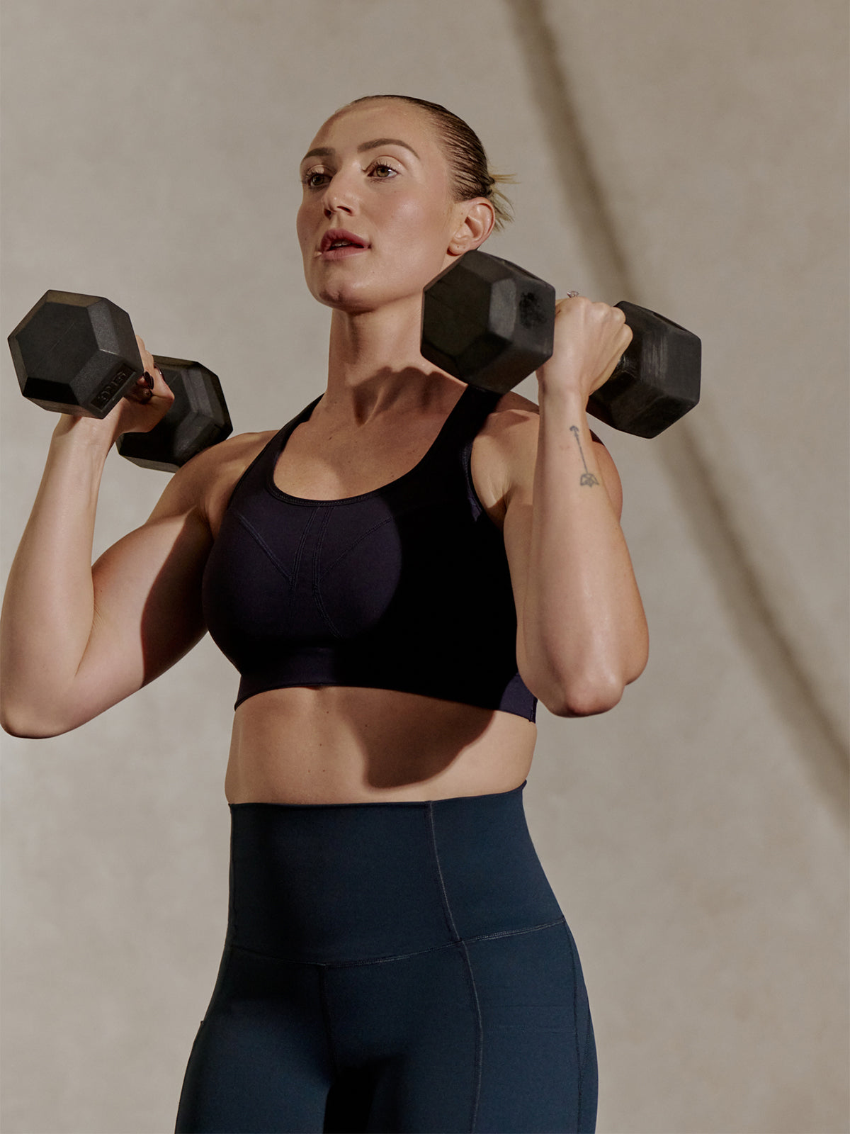 Years in the making, the Locked + Loaded High-Impact Sports Bra has been meticulously designed and developed to provide a full lockdown. This one is for the women with a bit more to manage, a good handful or more (C cup and up) And workouts that require more than a downward dog. Anything you can do, now your boobs can do too. Zero bounce, without digging in or rubbing and all while looking good enough to go topless.