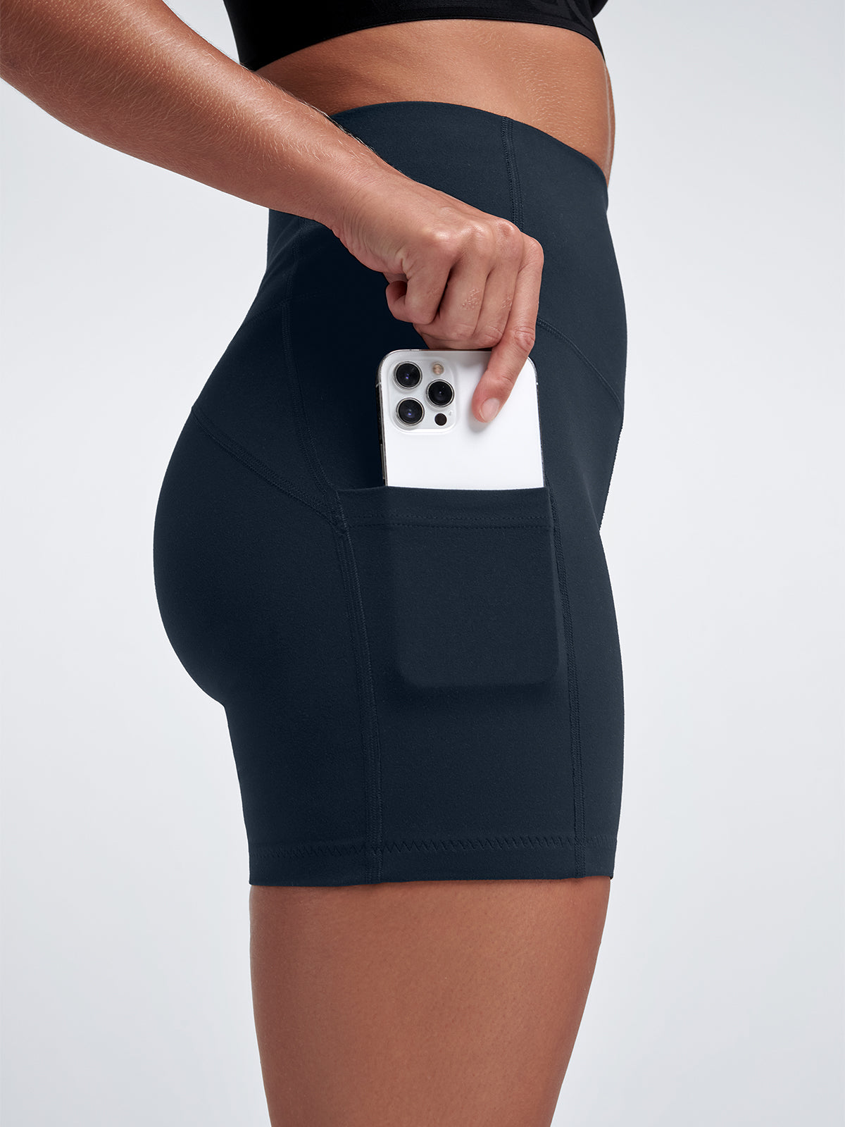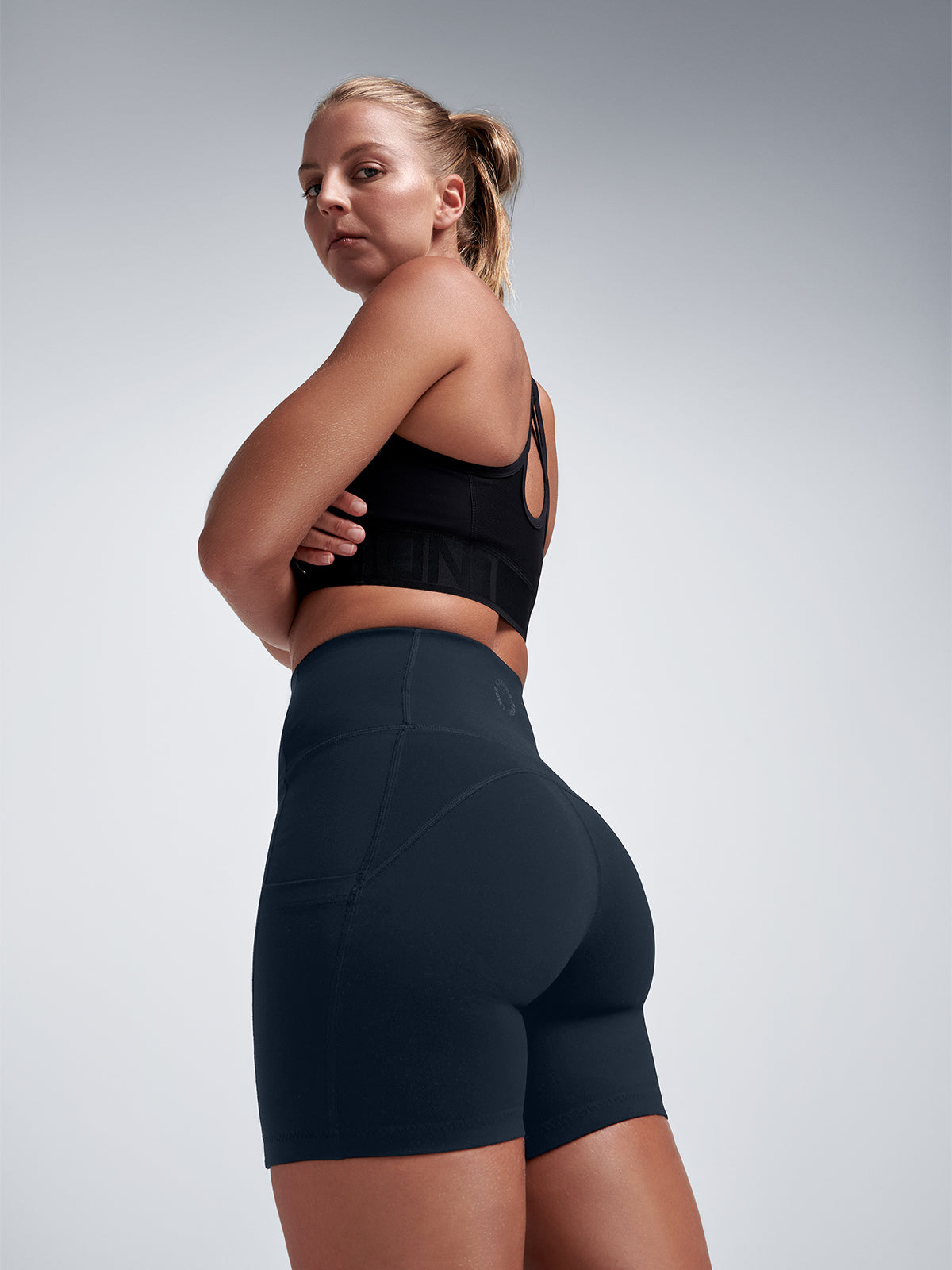 This is our 6 inch version - our shortest length - equipped with external side pockets on both sides. Designed with our signature waistband technology to support and shape your midline, this medium weight fabric made with recycled polyester, offers a medium level of compression which smooths and shapes the silhouette. The fit and technique used around the hem ensures no buldging or digging in. Don't let it's ridiculous comfort level fool you, this technical fabric is sweat wicking and quick dry ensuring it can keep up with the toughest workouts. And finally for an added touch of magic, we topped it off with our colour changing heat-reactive logo that changes from black to speckled fluro yellow as you heat up.