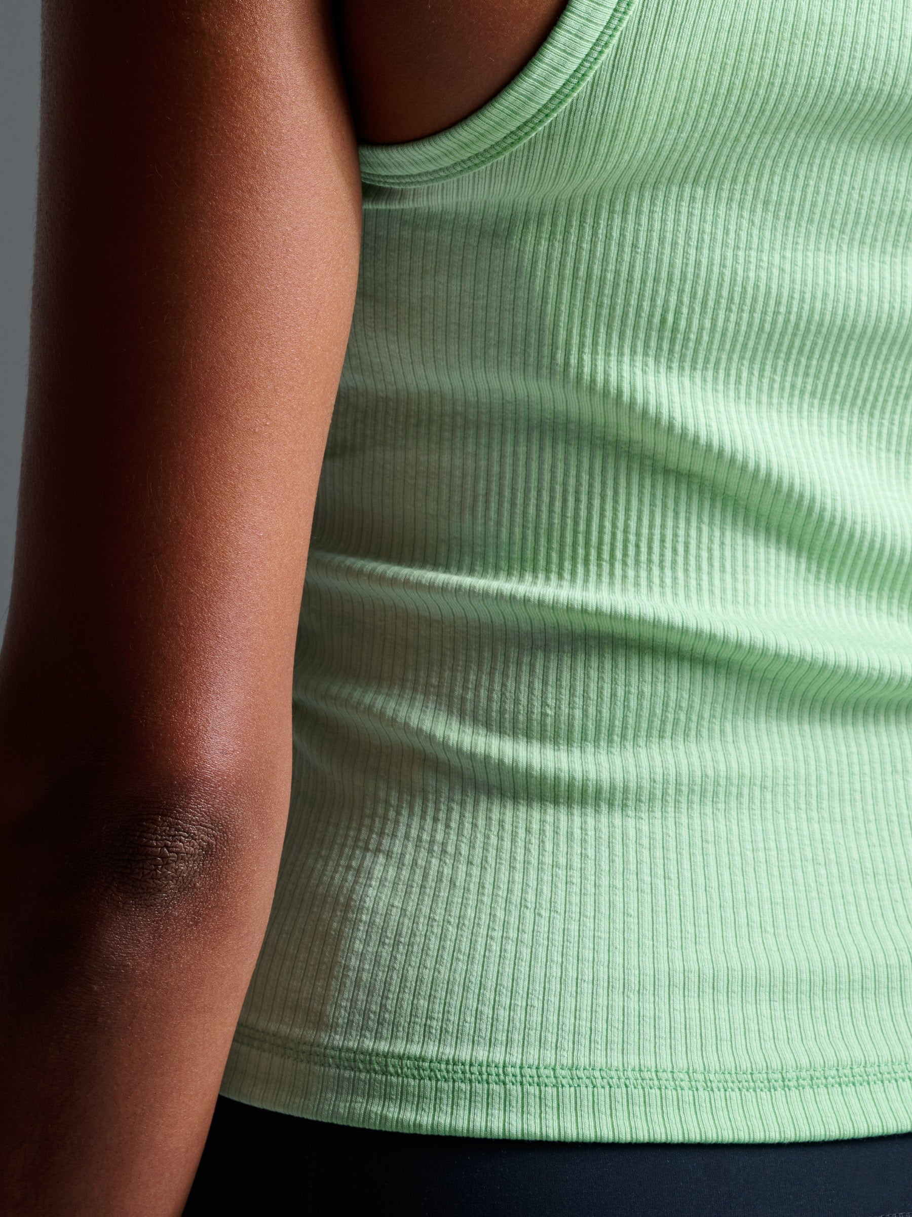 A close fit in stretch ribbed fabric with elastane for comfort and shape retention.